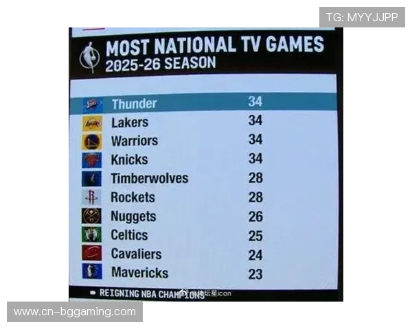 雷霆新赛季全美直播场次达34场 与湖人勇士尼克斯并列联盟第一